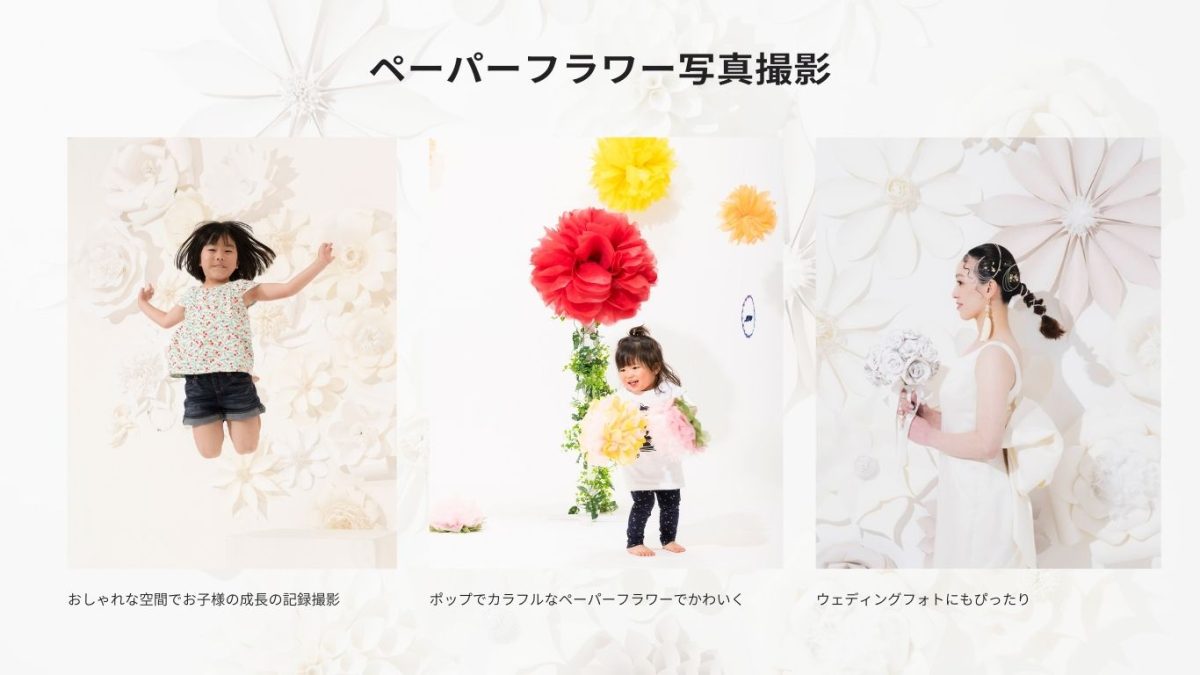 『モノクロ写真』と『ペーパーフラワー(白)』の