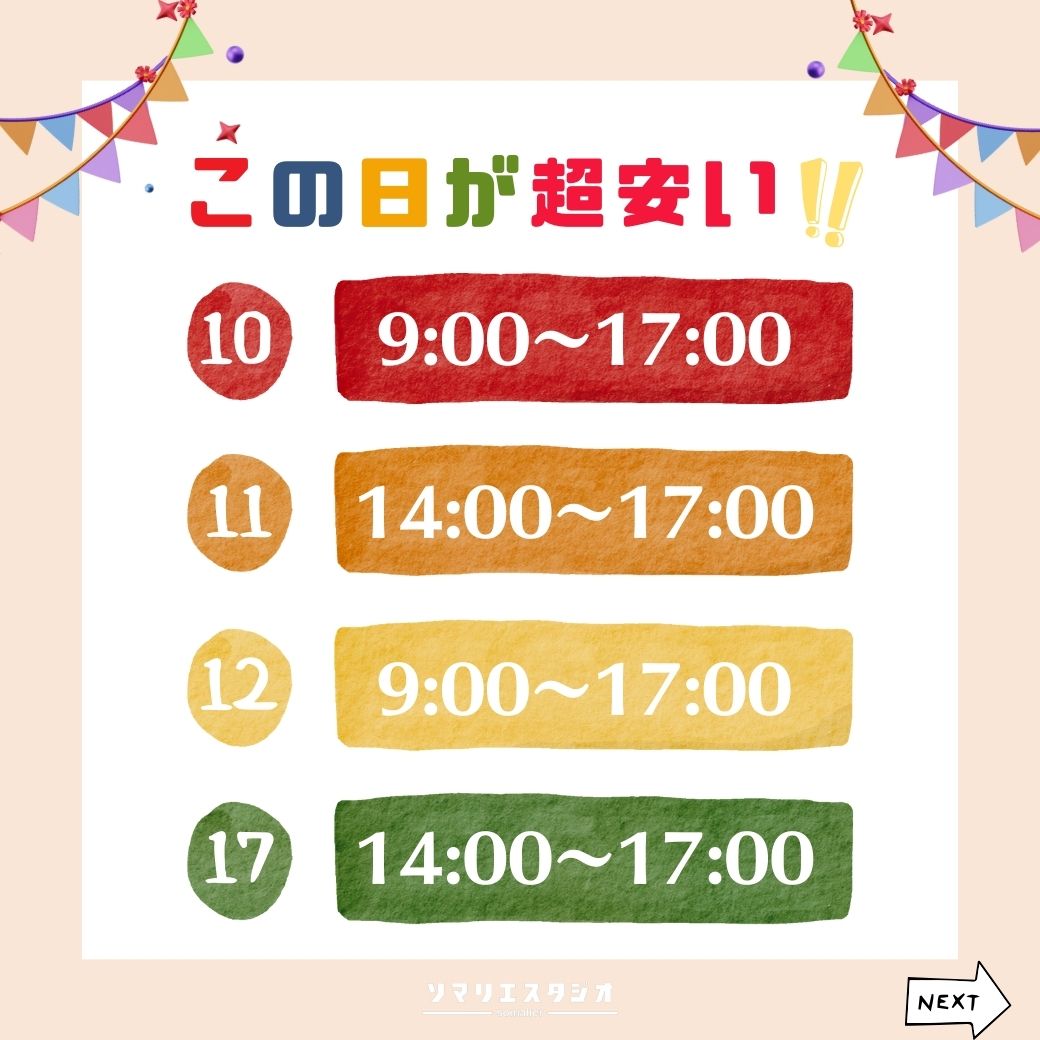 ⭕️のついた日の該当する時間帯に限り、1時間あたり¥3,300(税込)でご利用いただけます。
