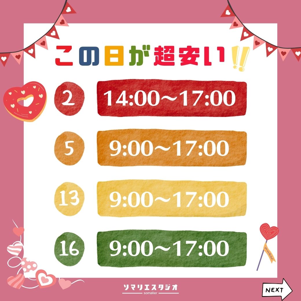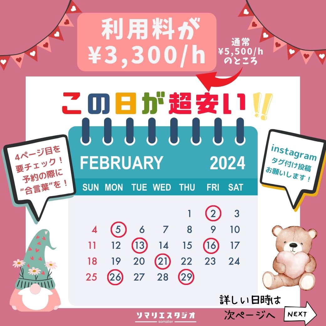 ⭕️のついた日の該当する時間帯に限り、1時間あたり¥3,300(税込)でご利用いただけます。